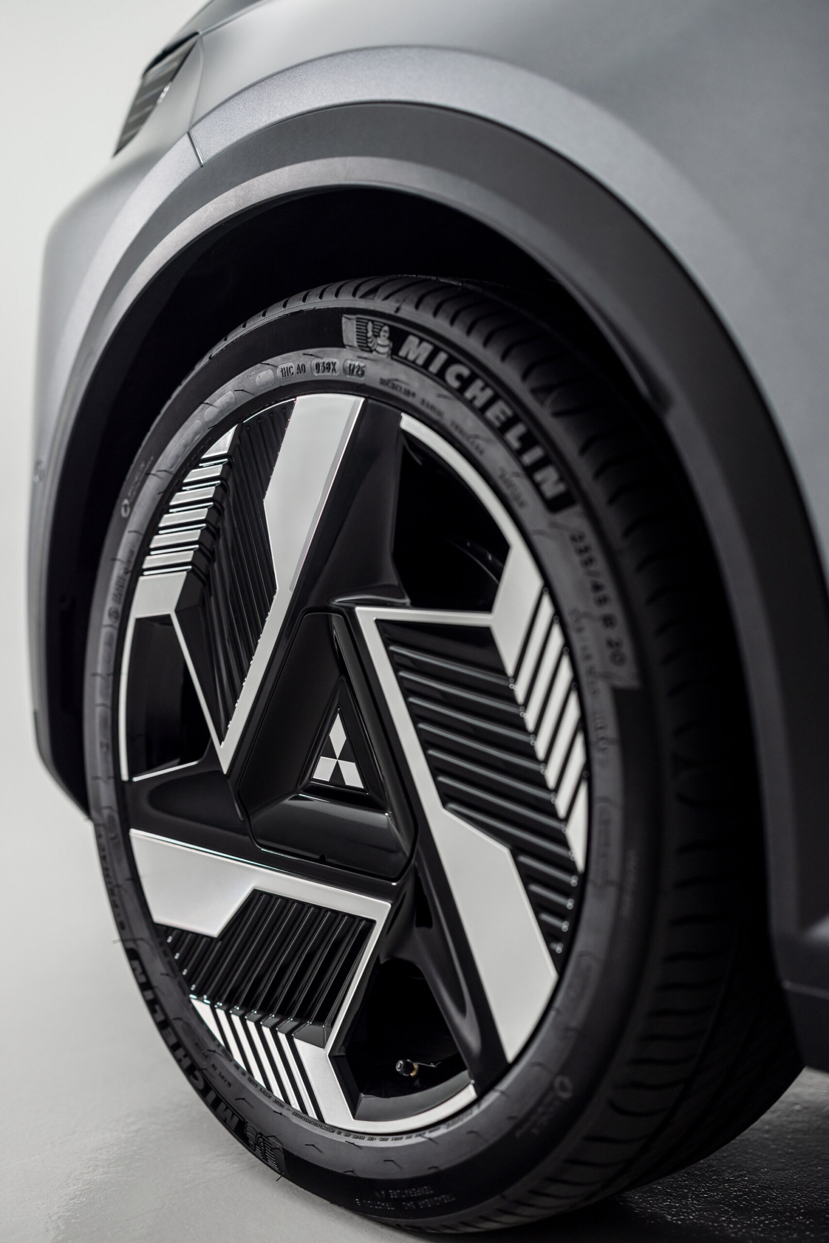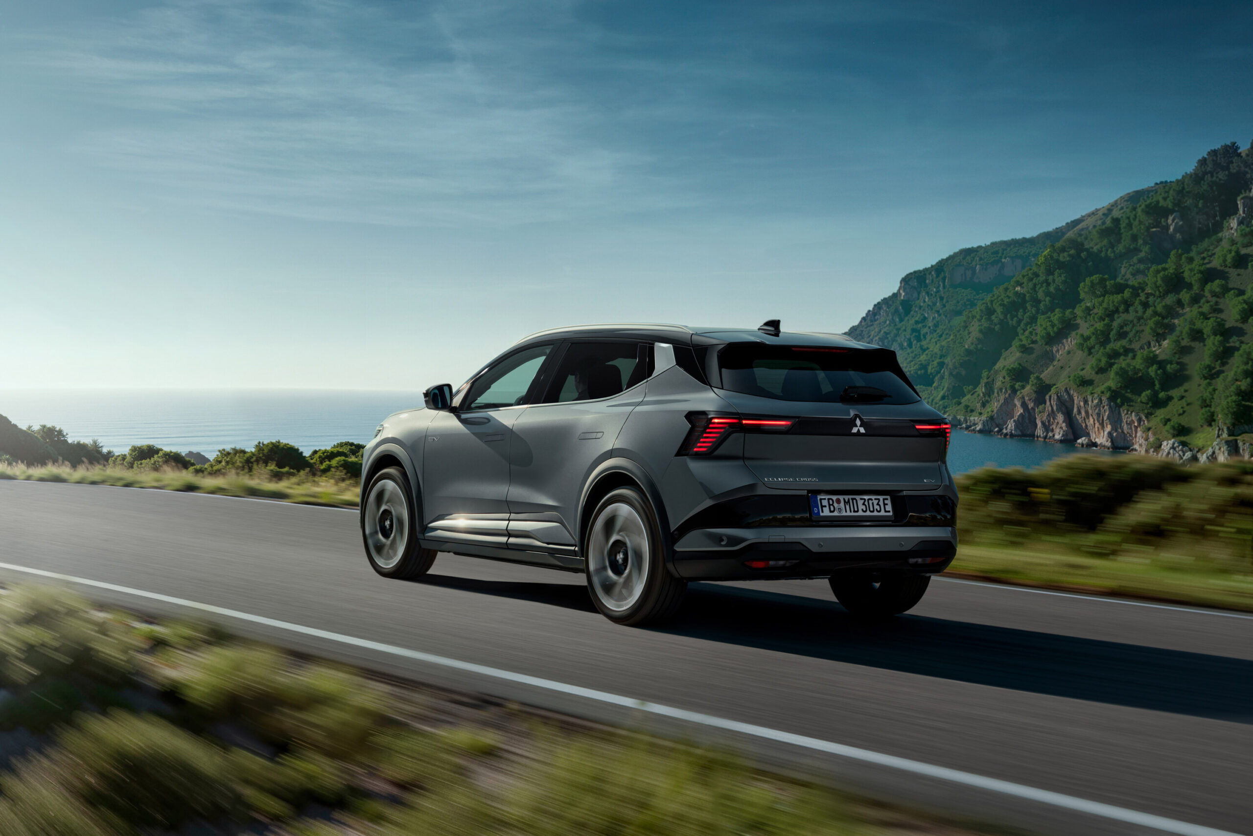 Aan de voorzijde prijkt een frisse interpretatie van het Mitsubishi Motors Dynamic Shield-gezicht. Het next-gen design biedt een driedimensionale, hexagonale oppervlaktestructuur die zowel kracht als verfijning uitstraalt. Het hexagon-motief aan de achterzijde is zó vormgegeven dat dit het DNA van het merk uitdrukt en de wagen direct in de familie plaatst. Zijn dynamische, wendbare houding is te danken aan het CMF-EV-platform; de afmetingen – 4.470 mm lang, 1.860 mm breed en 1.570 mm hoog – versterken zijn aanwezigheid.