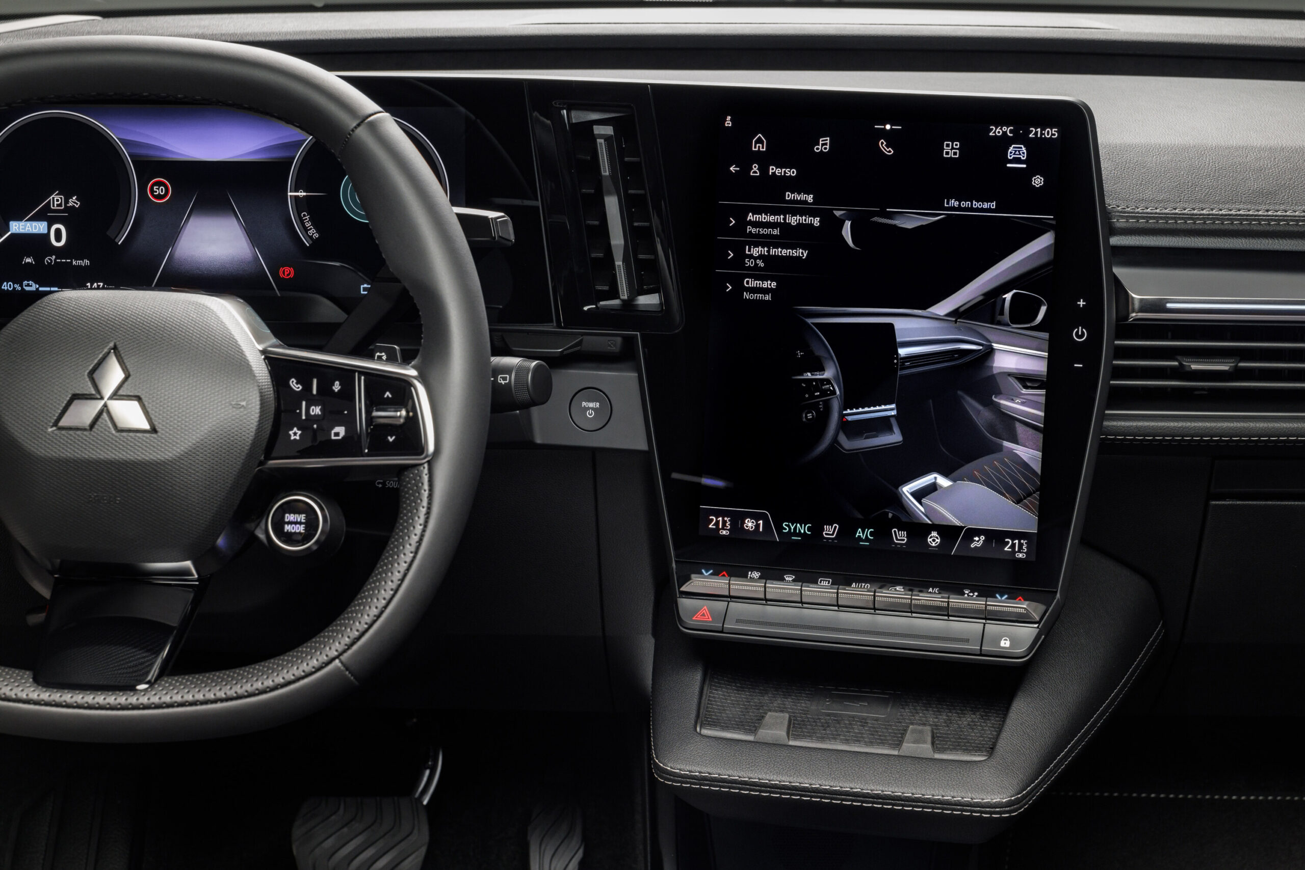 Via het centrale infotainmentscherm kunnen klanten geconnecteerde functies activeren bij de dealer. Zodra het voertuig is gekoppeld aan een Mitsubishi Motors-account, zijn de abonnementen zichtbaar in de Mitsubishi Motors-app.