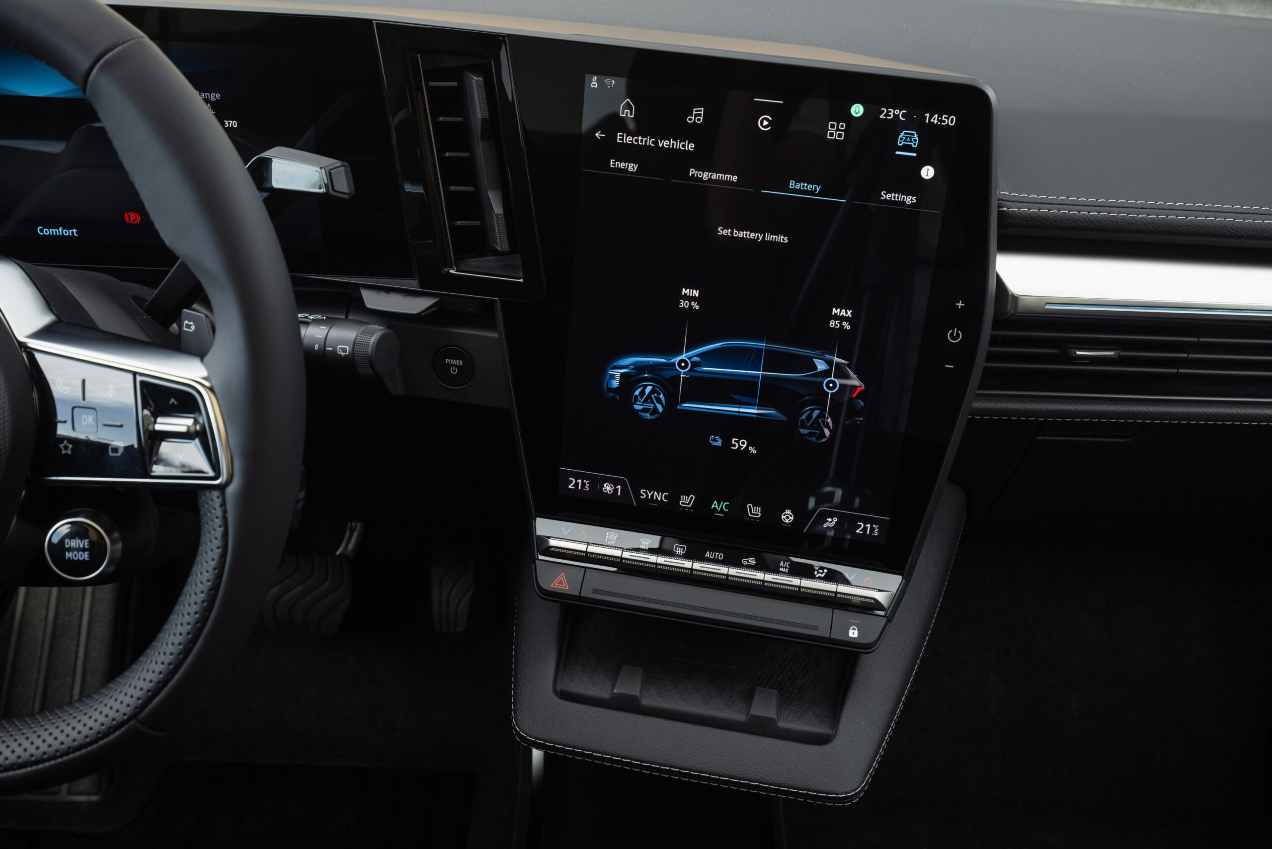 Het startpunt van de connectiviteit in het interieur is het 12″ infotainmentdisplay: het digitale middelpunt van de rijervaring. Het scherm in staand 3:4-formaat heeft een resolutie van 960 x 1.280 pixels en geeft informatie haarscherp weer. Dankzij de overzichtelijke navigatiebalk zijn functies en menu’s eenvoudig te vinden en te bedienen.